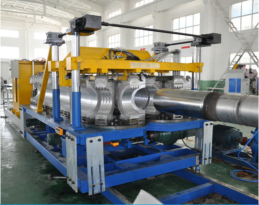 Corrugator được thông qua cấu trúc ngang với truyền dẫn loại dây chuyền, được trang bị hệ thống làm mát nước mở và hệ thống tạo hình chân không. Nó làm tăng đáng kể tốc độ sản xuất. Chức năng belling on line giảm chi phí đầu tư và cải thiện hiệu quả sản xuất. Chuyển động khối khuôn thông qua hệ thống truyền động cơ học trên và dưới đồng bộ và hệ thống tự bôi trơn tiên tiến. Nó đảm bảo độ chính xác di chuyển và ổn định chất lượng đường ống.