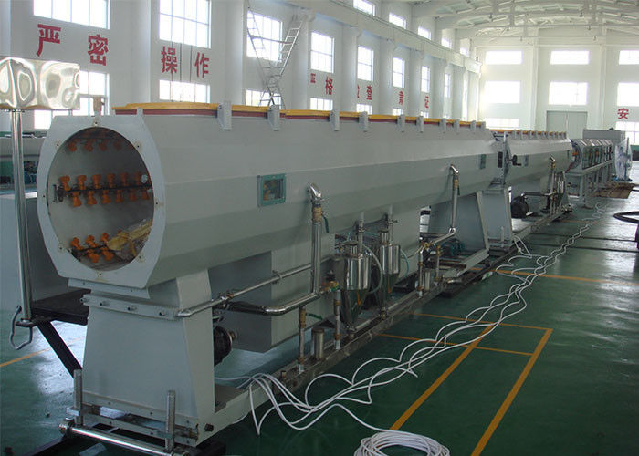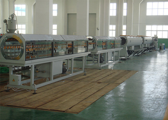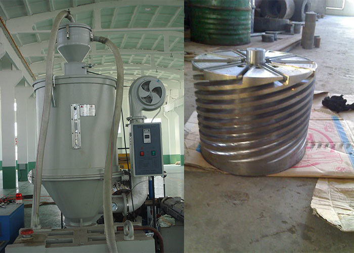 Nguyên liệu + lô chính → trộn → cấp liệu chân không → sấy khô vật liệu → máy đùn trục vít đơn → khuôn đùn đồng rổ → máy hiệu chuẩn → bể hiệu chuẩn chân không phun → bể chứa nước làm mát phun → dây đai kéo → máy đùn keo trục vít đơn → máy cuốn → trục cuộn hình thành → bộ làm mát nước → giá đỡ ống → kiểm tra và đóng gói thành phẩm