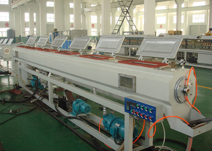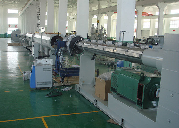 Dây chuyền sản xuất ống nhựa PE chủ yếu được sử dụng để sản xuất ống cấp nước và ống thoát nước trong lĩnh vực nông nghiệp và xây dựng, dây cáp ... Dây chuyền sản xuất này chủ yếu bao gồm máy đùn trục vít đơn, bể hiệu chuẩn chân không, bể làm mát phun, máy kéo, máy cắt, máy xếp, v.v.